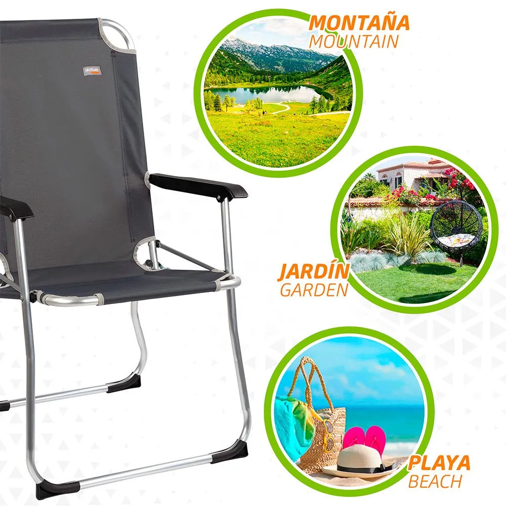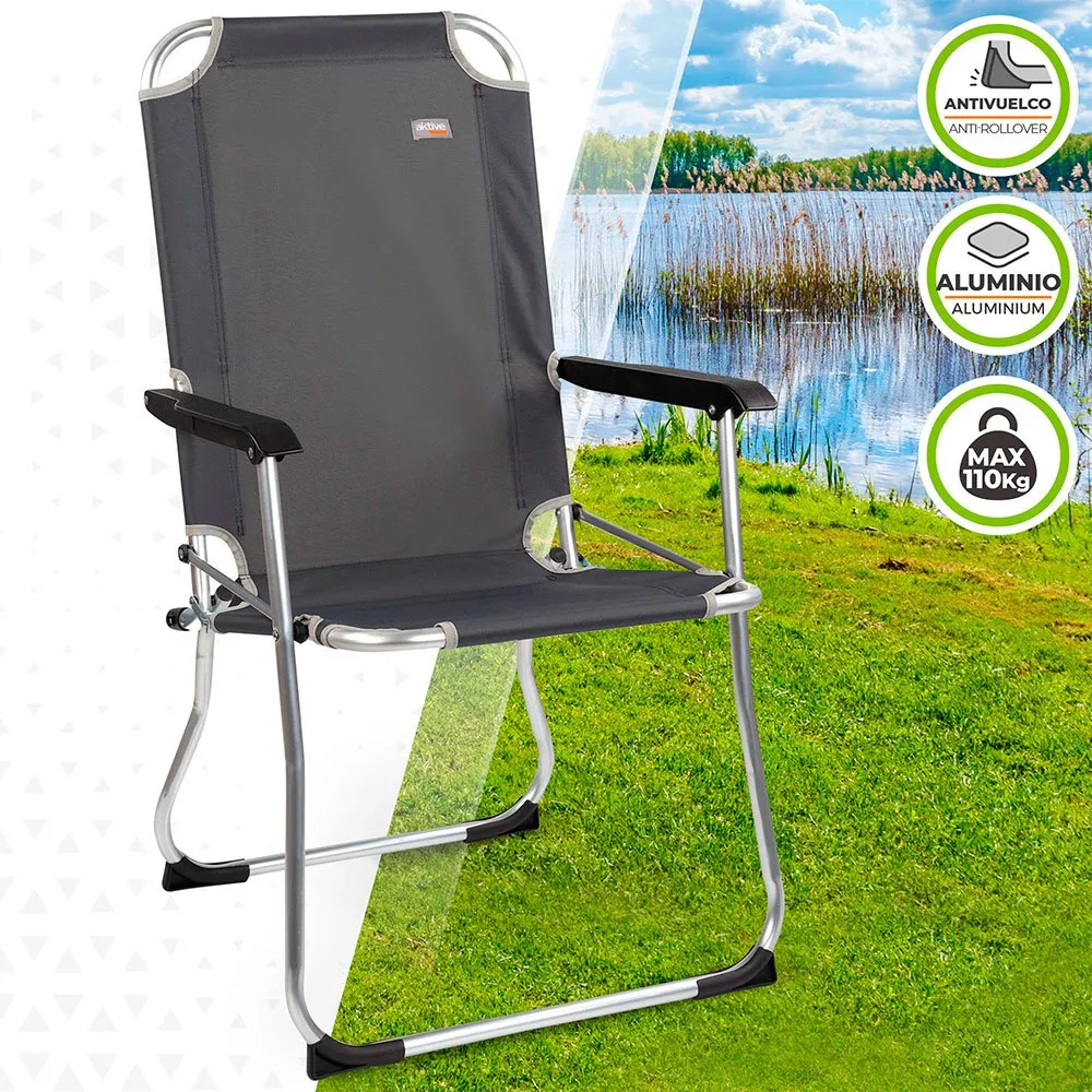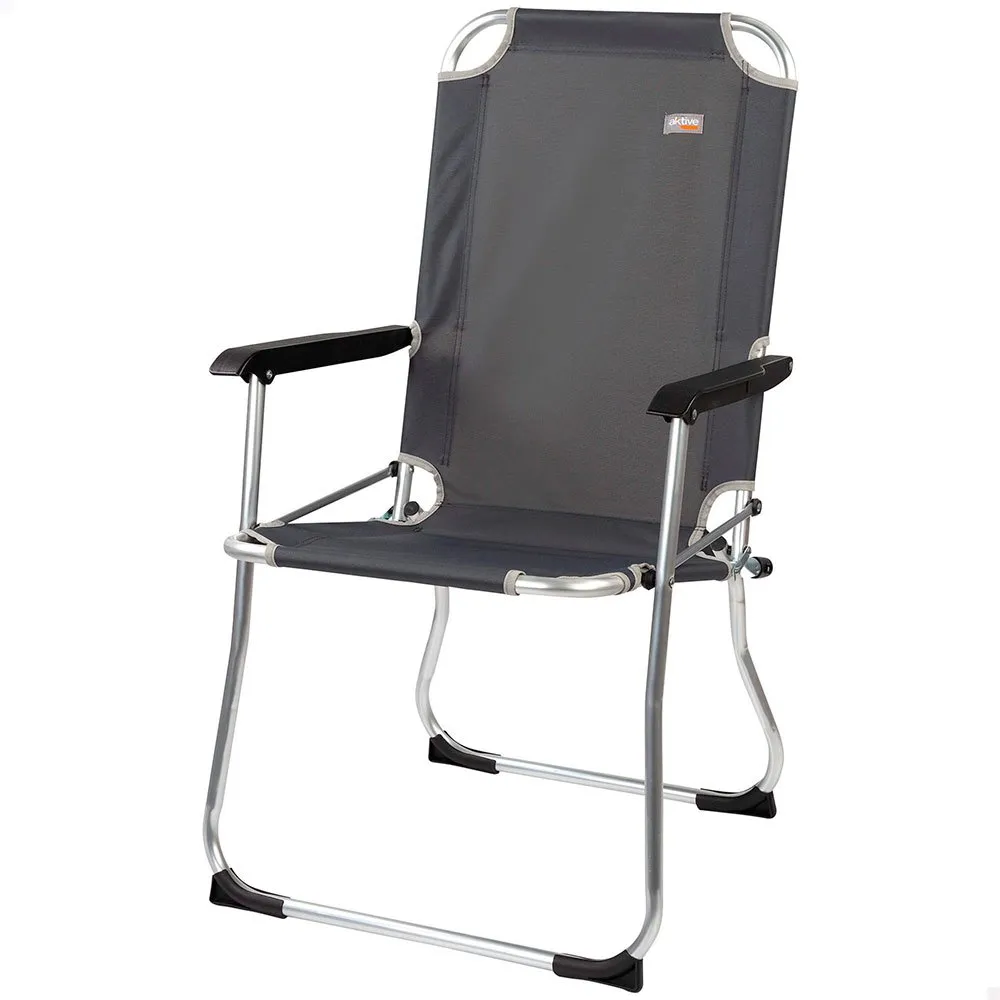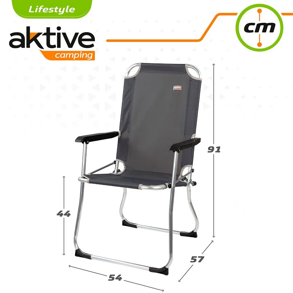 Aktive folding camping chair measures 57x54x91 cm. Made of sturdy, lightweight aluminium frame, with fixed backrest supports a maximum weight of 110 kg. The seat and backrest are made of strong and durable 600D Oxford fabric, ideal for outdoor use.
