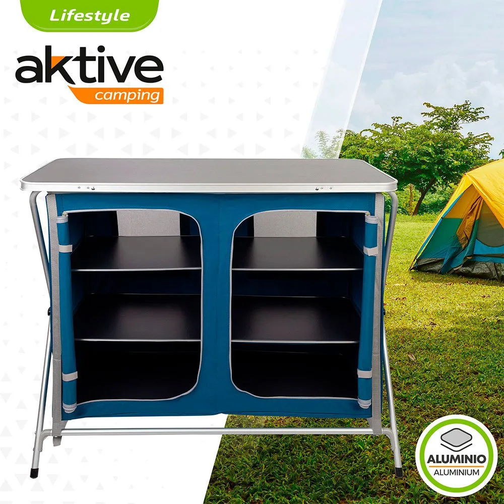 Aktive folding camping kitchen cabinet with two Aktive organizers.