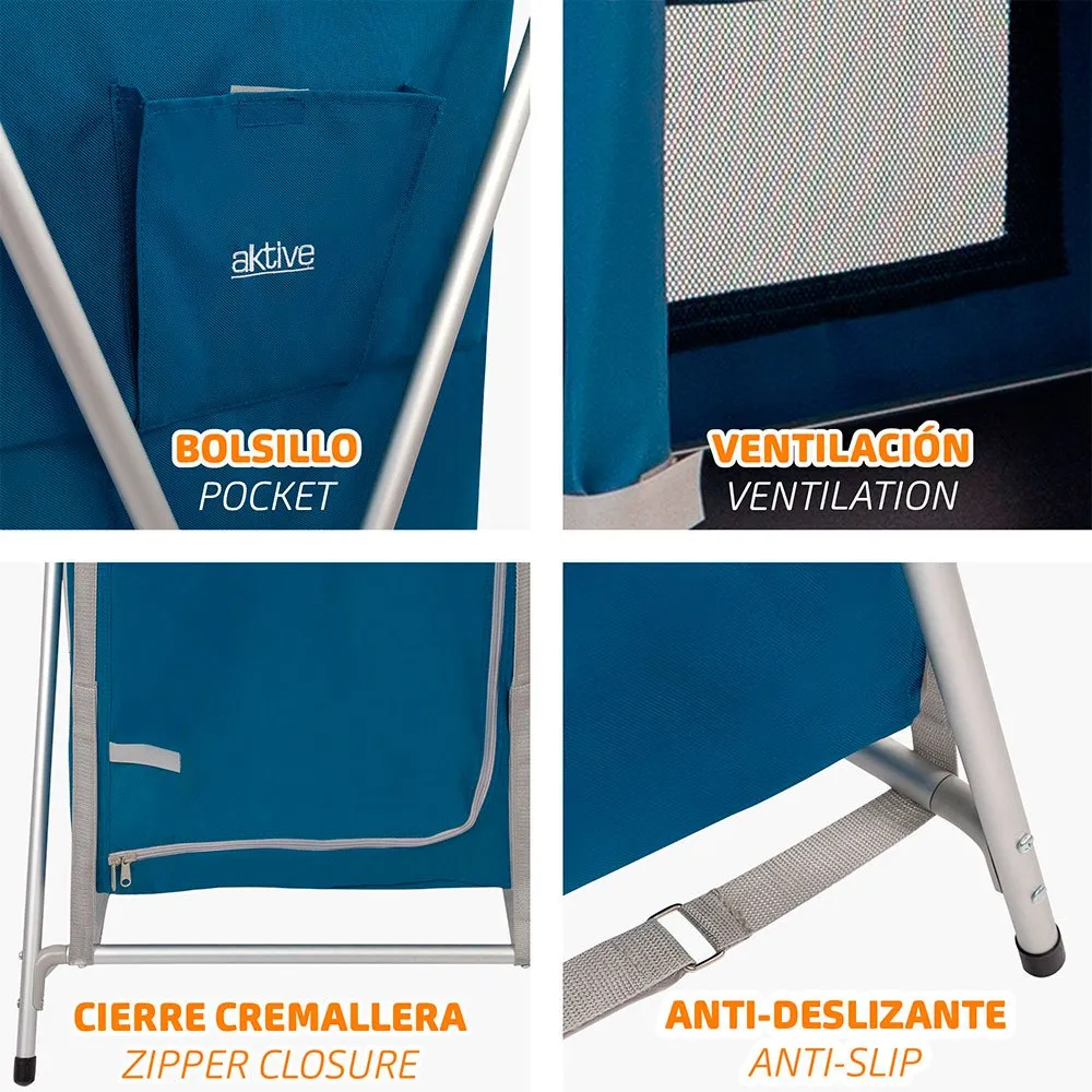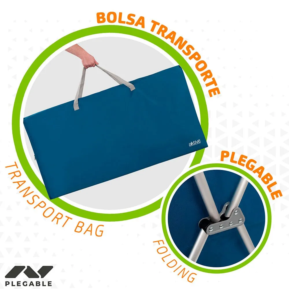 Its aluminum structure (19 mm thick) and the waterproof PVC 300D fabric give rise to 6 compartments in total (2 sections) and a wide wooden worktop with an aluminum profile that resists the heat of the portable gas cooker.