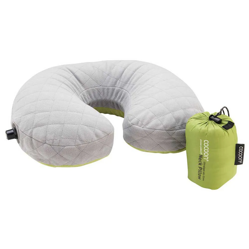 Comfortable, compact neck pillow with inflatable air core, synthetic filling and soft Microfiber shell. Ideal for planes, buses and trains.