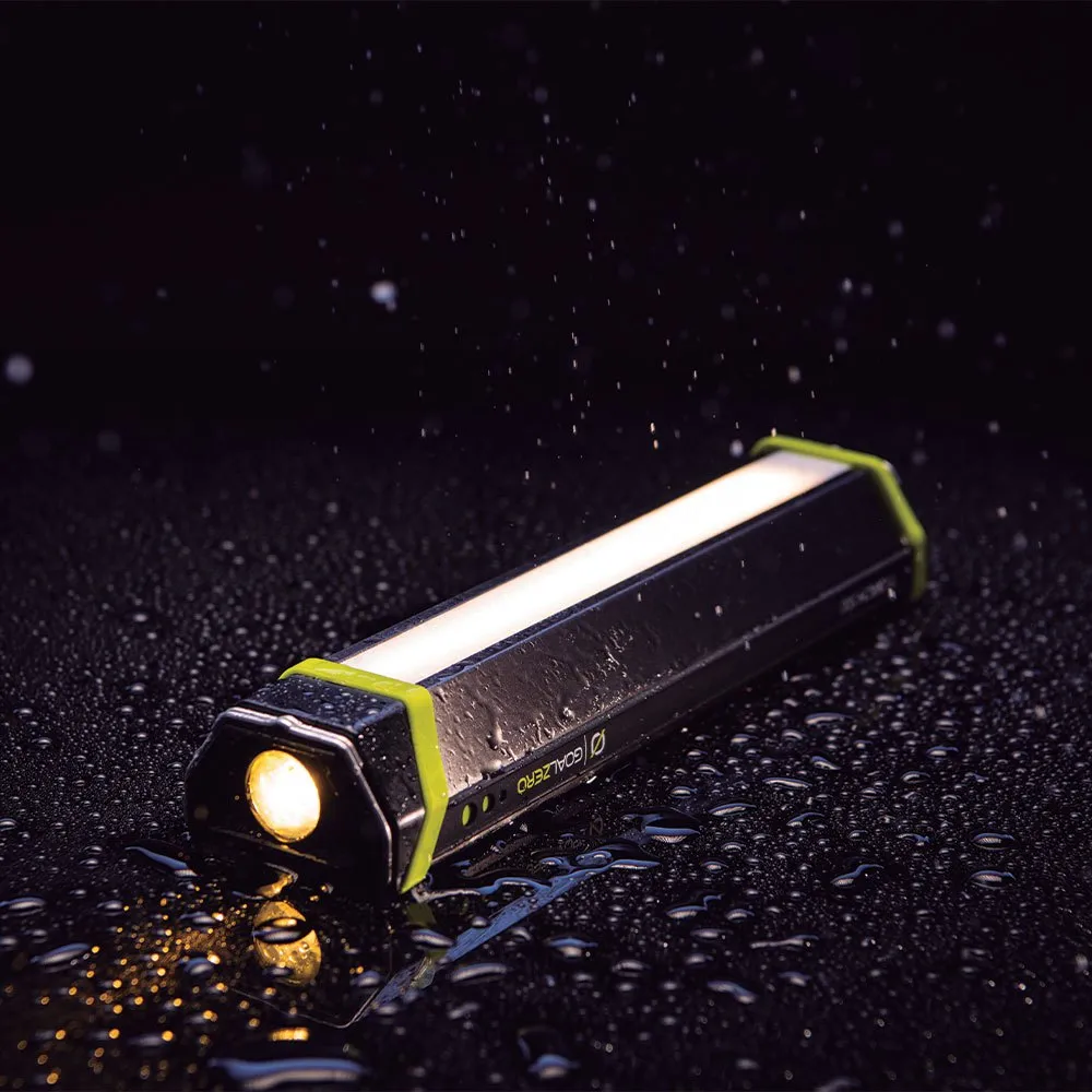 – Multiple Light Options: Adapt your light to fit the situation at hand. The Torch 500 equips you with both a 300 lumens spotlight and 300 lumens floodlight, each available with three different light settings: high, medium, and low.