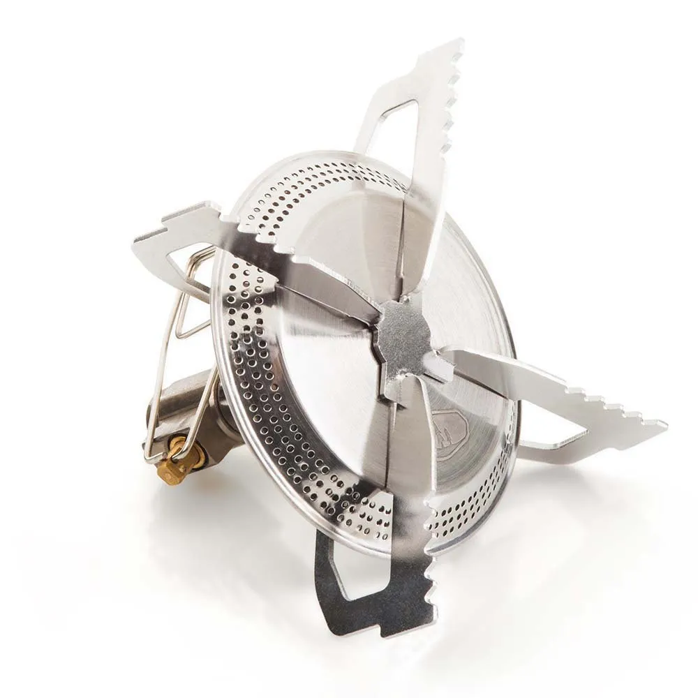 Rugged, high-output, canister mount stove. The high-output, Glacier Camp Stove is the epitome of rugged power. Designed for fast, reliable cooking, the sturdy pot supports hold larger cookware while the large diameter burner head spreads heat evenly across the bases of pots and pans. The Glacier Camp Stove is the burner to carry when hunger calls and nature beckons, because time stands still for no one.