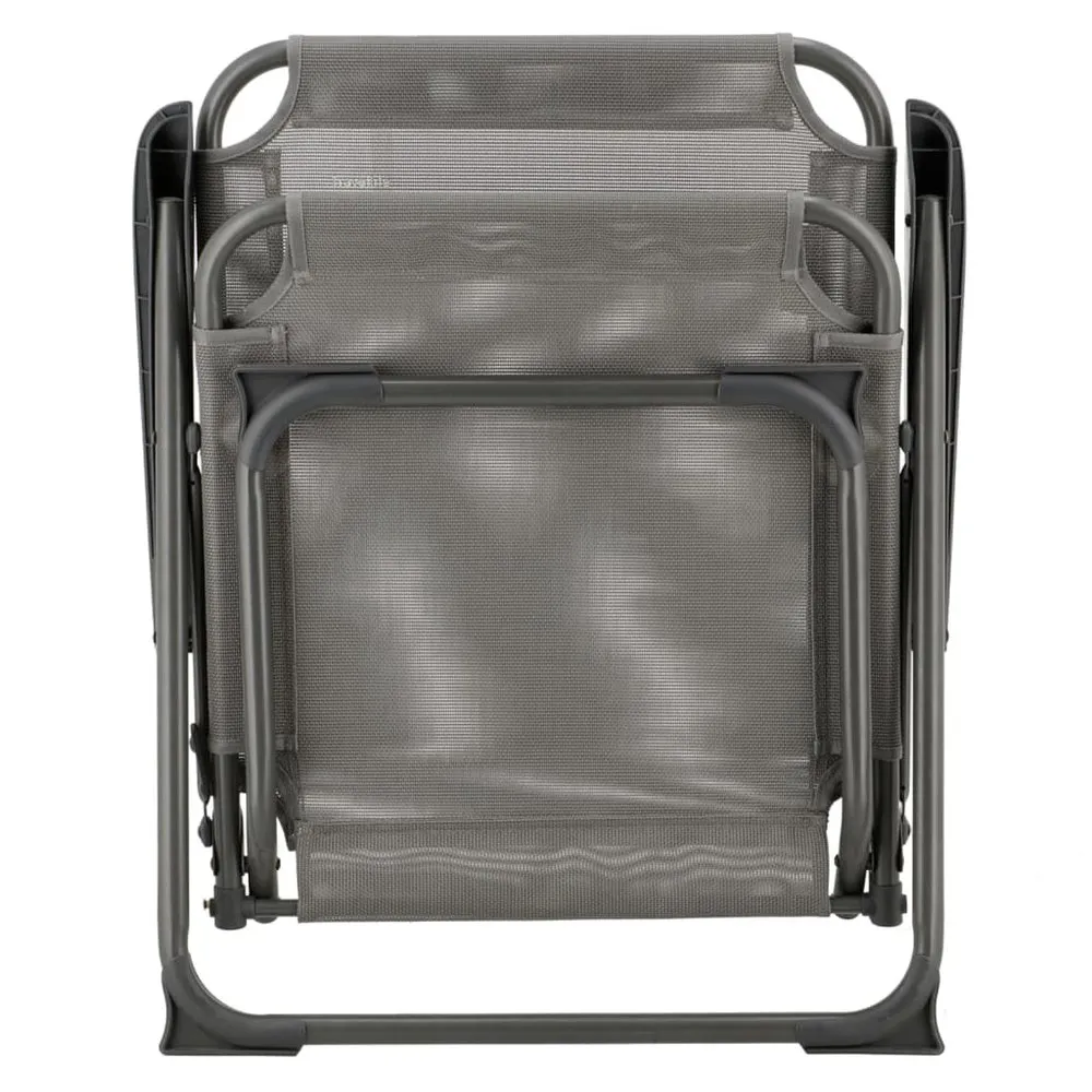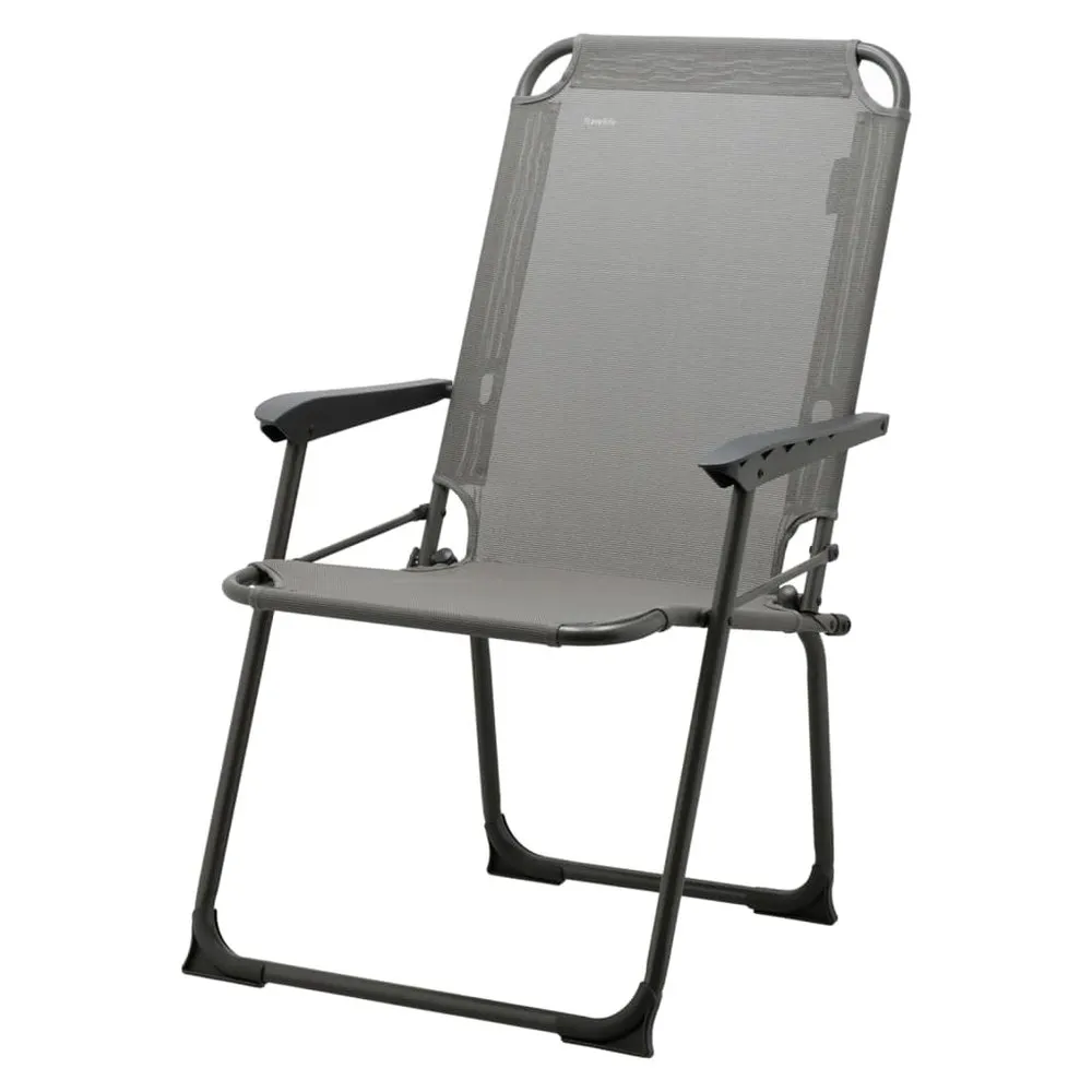Have a colourful holiday with the cheerful chairs from the Travellife San Marino series! The grey folding compact camping chair will immediately create the ultimate holiday mood. You can easily bring it anywhere, as it is easy to fold and has a lightweight aluminium frame. This makes it ideal to take with you in your car, camper or caravan. Its sturdy frame and stable legs allow this chair to stand on any surface even on unpaved terrain such as at the beach. Moreover, the San Marino is lined with polyester textile, this weather-resistant and breathable fabric that does not discolour in the sun and dries quickly after a drizzle. And of course, the chair is also very comfortable to sit on! Colour: Grey Frame material: Aluminium Top material: 70% PVC and 30% polyester Dimensions: (folded): 69 x 56 x 8 cm (L x W x T) Seat size: 48 x 45 cm (W x D) Comfortable and compact chair Carrying capacity: Max. 100 kg Sturdy frame and stable legs Weather-resistant Easy to fold Breathable fabric Colourfast Dries quickly Lightweight Weight: 2,9 kg