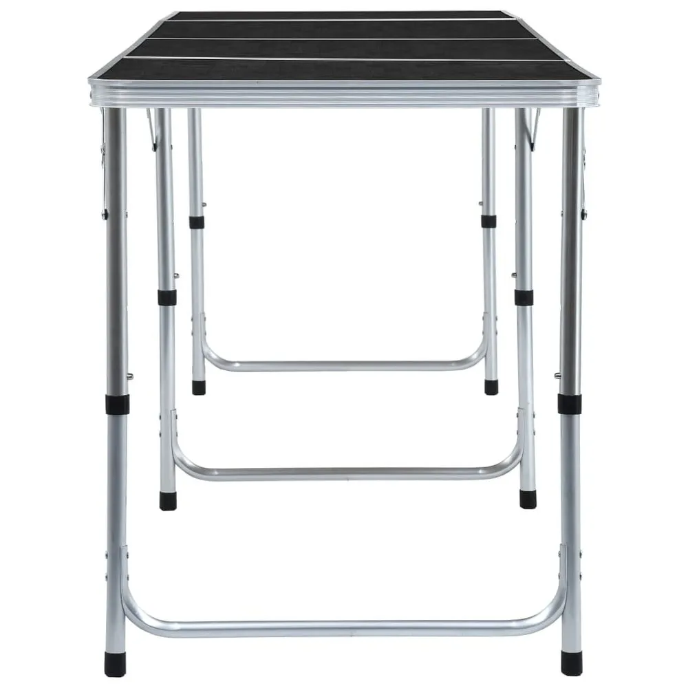 This foldable camping table with practical carrying handle will come in handy in kitchens, on patios, in gardens, and on picnics or camping trips. The table height can be adjusted to 55 cm, 62 cm and 70 cm. The camping table is light in weight. Thanks to the folding design, this camping table is easy to transport and can be stored away quickly when not in use. The carrying handle makes it very easy to bring the table with you when going out to have a picnic or camping trip. Thanks to the sturdy structure, this camping table has a high load capacity of up to 30 – 50 kg. Thanks to the metal frame and the robust MDF tabletop, it is highly stable and durable. Colour: Grey Material: Aluminium, MDF Unfolded dimensions: 240 x 60 x 55/62/70 cm (L x W x H) Folded dimensions: 60 x 60 x 14 cm (L x W x H) Oxidation to make it rot resistant Load capacity: 30 – 50 kg Foldable for easy transport and storage With a carrying handle Assembly required: No